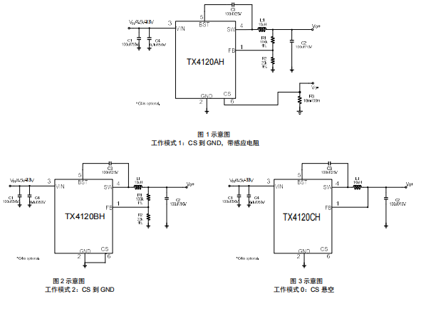 同时,TX4120xH集成了 线补,内部补偿电路,可设置的输出电流限流电路。