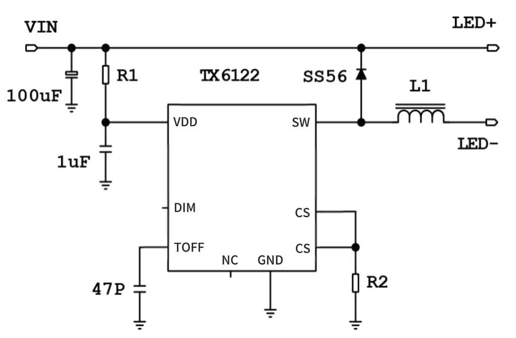 TX6122 是一款开关降压型 LED恒流驱动芯片